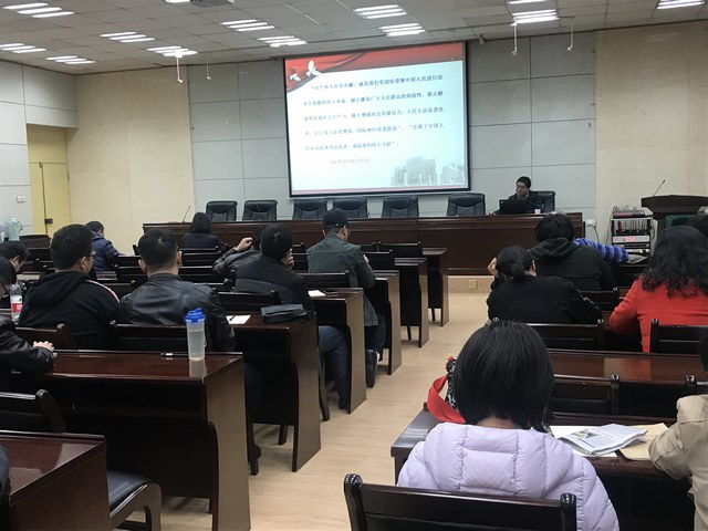 讲座主讲人、人文学院党委书记余小勇为理学院全体教工讲述了中国共产党建党初期的历史,重点讲述了红军长征的光荣革命史。余小勇书记用大量的史实、照片,向听众展示了红军从第一次反围剿到长征胜利的英雄足迹,从党的不懈奋斗史、党的理论探索史、党的自身建设史三个阶段为大家详细梳理了中国共产党的发展历史。和大家一起重温了习近平总书记关于我党历史发展的主题和主线的重要论述,勉励全院教工在党的旗帜下,继续“不忘初心,牢记使命”,立德树人,做“四有”好老师。(综合办)