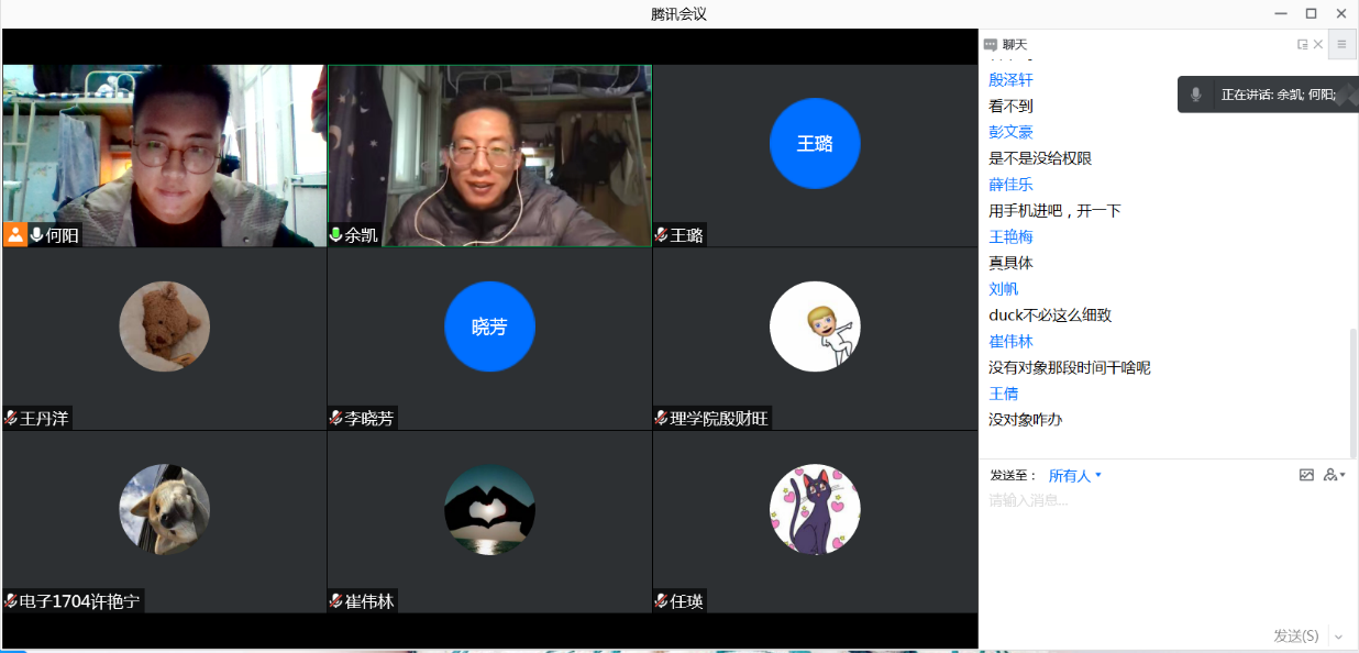 2020级研究生以“讲好抗疫故事,宣传抗疫精神,体现国家担当”为主题,与会研究生集中学习了习近平总书记关于疫情防控工作的重要讲话和指示精神,通过讲述抗疫小故事、分享疫情期间的个人学习和生活、探讨特殊时期青年学子如何担当作为等形式进行了深入交流。会议主持人党硕针对当前班级同学思想动态、疫情防控、科研学习、日常生活等方面提出了建议和要求。