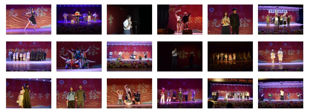 本场晚会分为“燃梦新生”“涌动青春”两个篇章。我院辅导员李猛弹奏的《琵琶语》作为开场,街舞《whiplash》以动感的节奏和炫酷的舞姿赢得了观众的阵阵掌声,歌曲《于是》《My heart will go on》《就是爱你》深情而富有感染力,小品《非礼勿扰》幽默诙谐,小品《时间都去哪儿了》唤起了大家对日常学习生活时间的珍惜与回忆,敦煌舞、新疆舞和拉丁舞的《舞蹈串烧》将现场气氛推向高潮,展现了同学们青春的活力与激情。进入下篇,歌曲《你还要我怎样》《如果有来生》《走在冷风中》《Jar of love》以深情的歌声打动了每一个同学的心,《穿越古今,衣袂飘飘》通过精彩的走秀展示了古今服饰的演变与魅力,话剧《黑天鹅王子和七个黄金矿工》创意独特笑料不断,现代舞《New dance》再次点燃了现场的热情,土木工程学院辅导员张曼带来的钢琴独奏《这世界那么多人》琴声优美,传递着爱与希望。最后,Flipped!乐队一首《花海》以欢快的旋律和精彩的表演为晚会画上了完美的句号。晚会还穿插了激动人心的抽奖环节,9名幸运观众获得“幸运大礼包”。