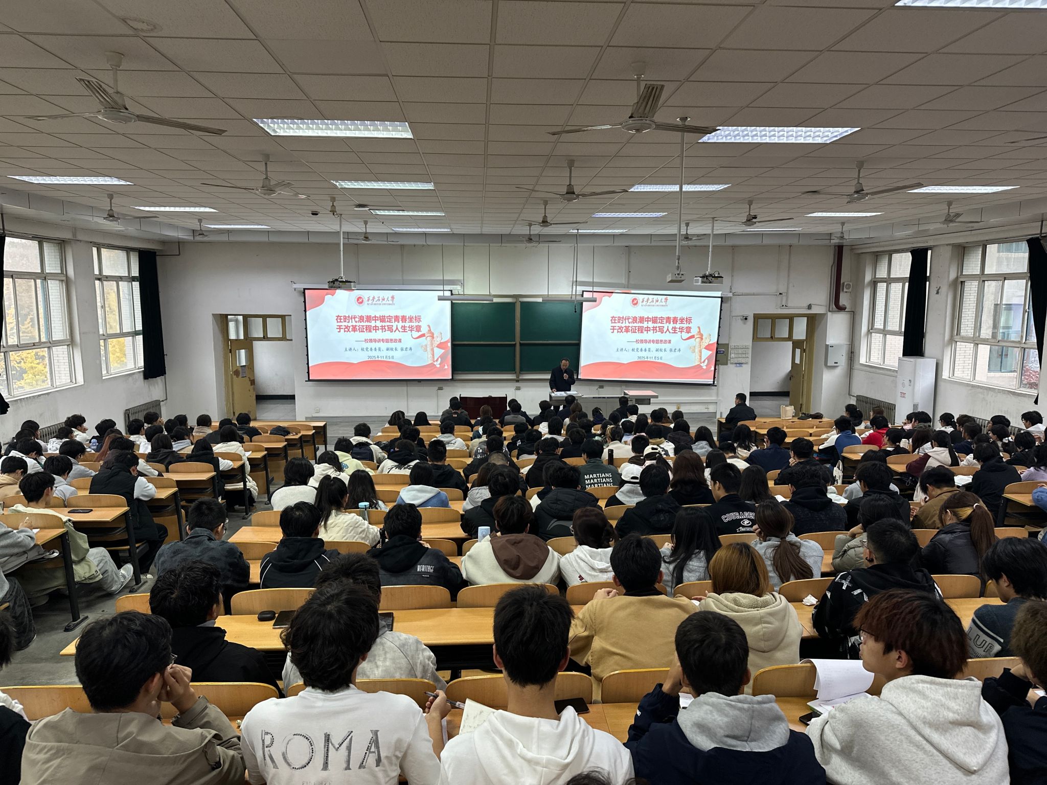 为全面贯彻立德树人根本任务,将思想政治教育贯穿人才培养全过程,11月5日下午,校党委委员、副校长张君涛在鄠邑校区博览楼234教室为理学院2025级新生讲授了题为《在时代浪潮中锚定青春坐标,于改革征程中书写人生华章》的专题思政课。理学院班子成员、各年级辅导员以及2025级全体新生聆听了讲座。