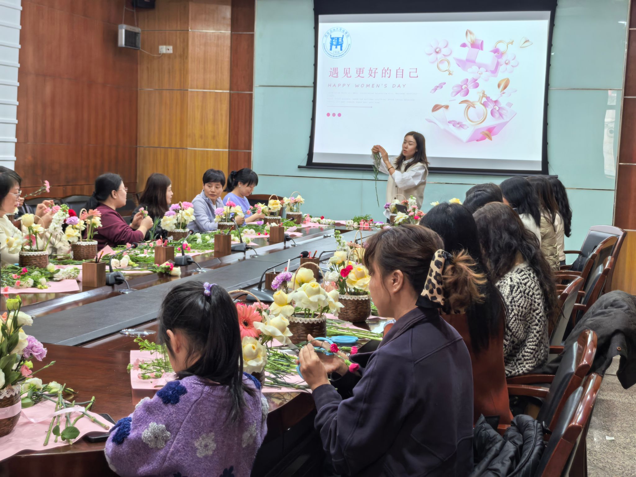 在“三八”国际妇女节来临之际,为丰富女教职工精神文化生活,3月6日下午,我院在雁塔校区第四会议室举办主题插花活动,女教职工欢聚一堂,在花香创作中感受美好、提升自我。