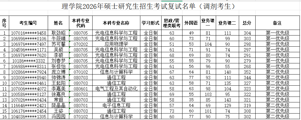 现将我院调剂复试名单予以公布第二批(光电信息工程)。