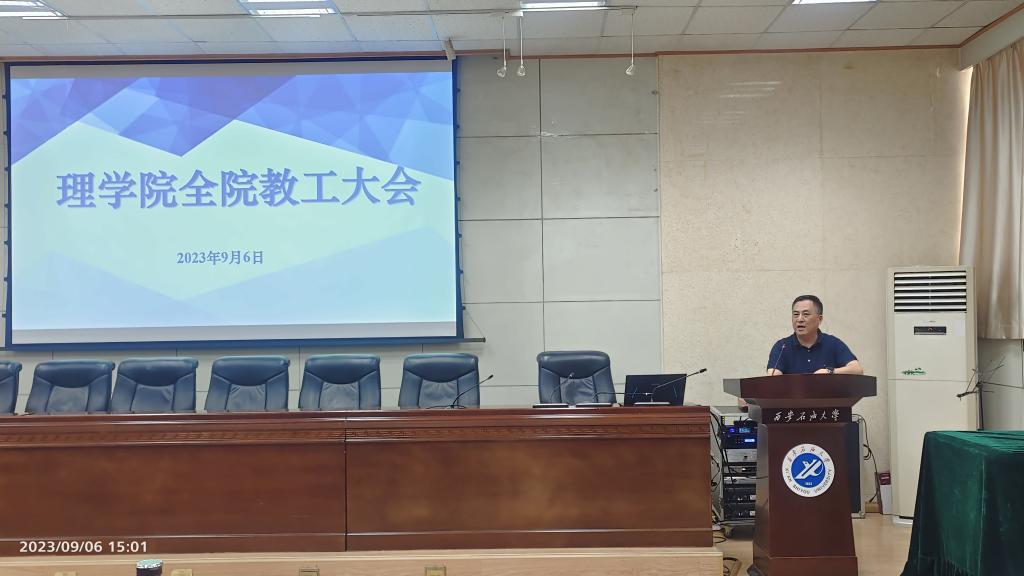2023年9月6日下午,我院在雁塔校区西阶第三会议室召开全院教职工大会。学院领导班子和教师120余人参加,党委书记廖敏主持。