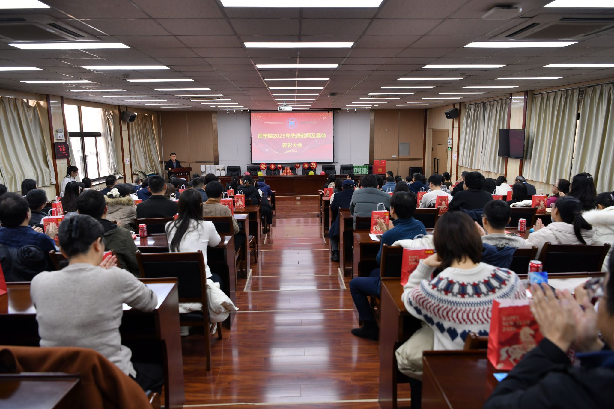 折延宏在主持中指出,2025年是全院师生员工凝心聚力、砥砺前行的一年,是学院各项事业稳中有进、硕果累累的一年。他全面回顾了2025年理学院在党建引领、学科建设、教学科研、人才培养、学生工作、服务社会等方面取得的丰硕成果,并指出这些成绩的取得凝聚着每一位师生的智慧与汗水,为学院高质量发展奠定了坚实基础。